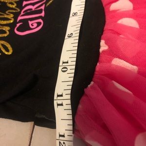 Pink tulle with big white dots Black top that says Birthday Girl outlined in Gold ✨ ✨✨✨Comes with matching Mouse ear headband