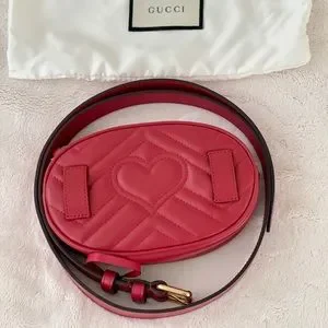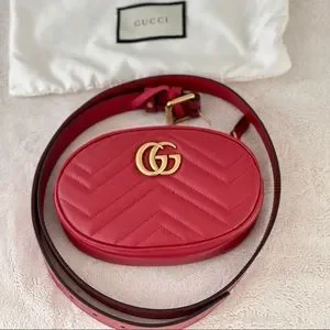 GUCCI Calfskin Matelasse GG Marmont Belt Bag 95 38 Hibiscus Red. Worn twice and practically brand new comes with dust bag.