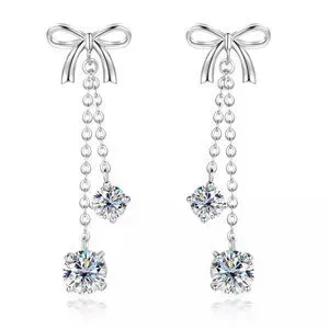 Certified 3ct. t.w. Diamond Bow Dangle Earrings 18k White Gold over Italy Silver
