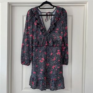 NWT Topshop Double V Long Sleeve Jersey Floral Mini Dress