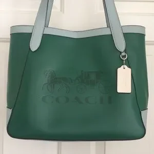 New Coach Tote Colorblock with Horse and Carriage Pebble Leather Green Multi NWT