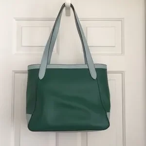 Color: Green, Light blue handles, Silver tone hardware