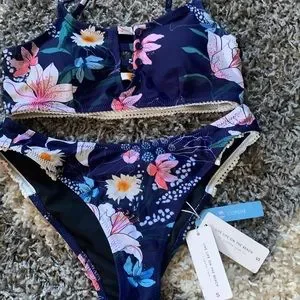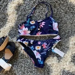 NEW with tags! Cupshe Floral Navy Cutout Bikini Set Size (Small) Top and Size (Small) Bottoms. Never been worn, arrived later than I needed it. Super cute, fits true to size!