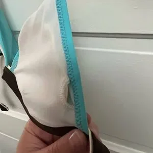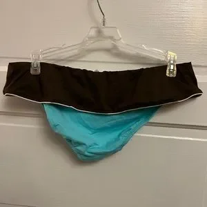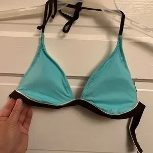 Speedo, axcelerate line bikini. Triangle top. Ties behind the neck. Lightly padded in the breast. Teal colored with brown skirt and straps. No tags but never been worn. Has matching swim skirt that is sold separately. Discounted if bundled.