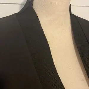 Open front blazer with ribbed trim detail.