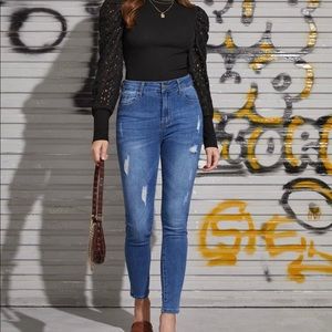 Boho Lace Puff Cuff Long Sleeve Top Blouse