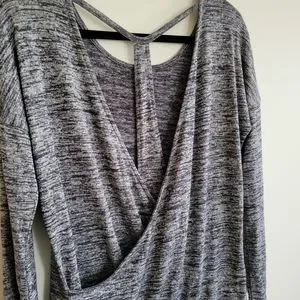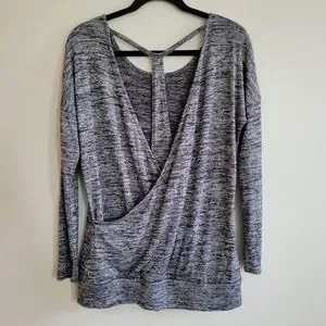 Athleta Pose Layered Cutout Back Tunic Top, Heathered Marled Gray, Size Small
