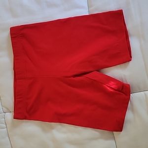 Solid red bike shorts.