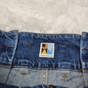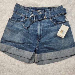 A belted high-rise waist gives a vintage edge to these denim Cinch Shorts from Jean Atelier. The wide legs and relaxed shape set a casual mood, while the darker wash on the rolled cuffs lends a cool contrast. 100% Cotton Machine Wash Made in USA. In excellent condition, ships within 1-2 days (: