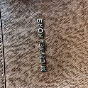 Brown leather Michael Kors' Computer Bag and Purse. It has a padded lap top sleeve in the middle. Straps adjustable.