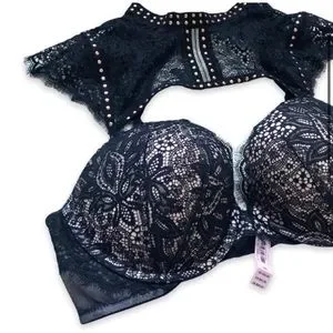NEW! Victoria’s Secret black push-up bra with lace top attached