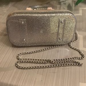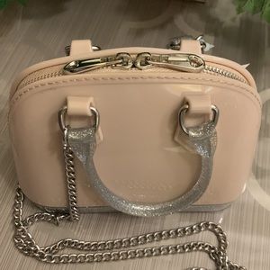 Blush/Glitter design great for the summer. Makes for a great gift. Used only once. Last image is only an example of how small this bag is and how it looks crossbody.