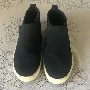 Women's Dolce Vita blue suede shoes. These slip on high-top shoes feature a genuine leather upper with a man made outsole. These shoes are padded inside and have an approximate 1" sole. Size 8