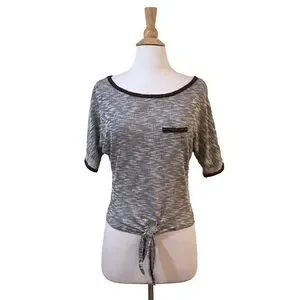 Studded Trim Tie Front Soft Marled Knit Tee