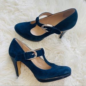 Franco Sarto | Blue Suede T-Strap Heels