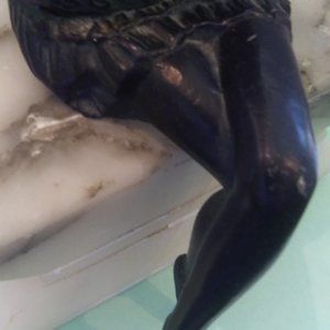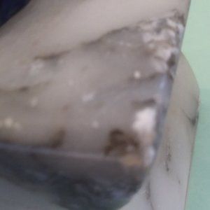 Very heavy book ends featuring LADY Pierrot clowns/mimes with a stone base most likely made by JB Hirsch no markings that I can find .. All my research says J B Hirsch ~ Circa 1920's. Lots of flaws on these pretties . MISSING HAND ( I was going to try and make one with resin and paint by making a mold of one hand but yeah I am never going to have time to do that plus I would be afraid I would cause more damage and then she would have no hands ) . Felt on the bottom very thin , little left . Almost no paint left on their faces but a tiny bit of red for the lips . Lots of chipping on the stone base and the metal figurines themselves see last 8 pictures for examples of what damage you will find on these ancient beauties . Measurements :~5.5" x ~ 4" on the base . soda can and ruler in pics above. to help visualize the size. . Had these forever moved so many times with them going to miss them . My research says "during the 1920s and 1930s, an entirely new modern style of decorative art emerged, using a combination of bronze and ivorine or celluloid (predecessor of plastic) . The ivory or ivorine representing exposed flesh and the bronze or spelter representing clothing. The combination of “French Bronze” (spelter) and ivory or ivorine were fully exploited during the Deco period " . Questions are always welcome The clowns are dressed in a very dark blue color family. Vase with flowers not included I have always displayed them when I had flowers with flowers .