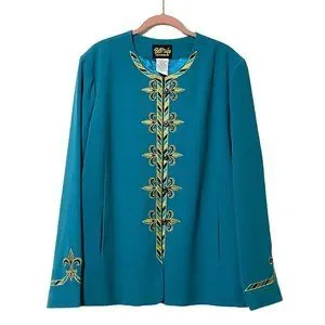 Bob Mackie women's sz XL embroidered gold fleur-de-lis long sleeve jacket top