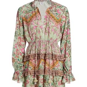 This minidress is crafted of cotton with a floral print and tiered ruffle details.