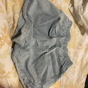 D. Jeans brand high waisted denim shorts. Elastic isn’t too tight but isn’t too loose. Rarely worn. Still think they’re super cute