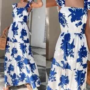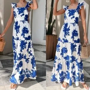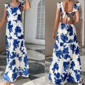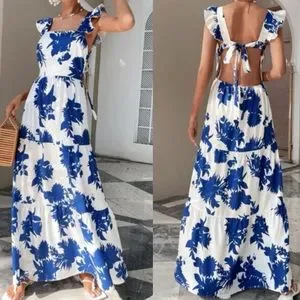 Boho floral print cutout open back maxi dress