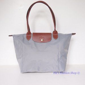 ❤️ NWT LONGCHAMP Le Pliage Small Medium Nylon Shoulder Tote GRAY 100% AUTHENTIC