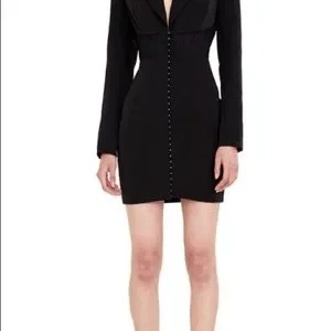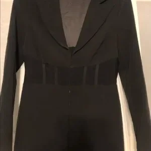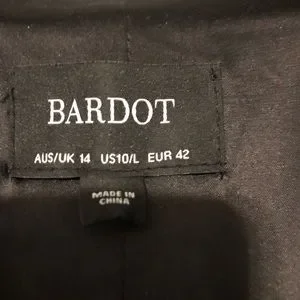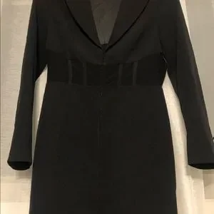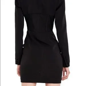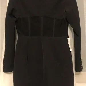 Bardot Corset Blazer Dress, black , size US-10L Eur 42 The Corset Blazer dress is cut from a stretch suiting fabric and features a mesh panel with boning under the bust. It’s designed with long sleeves, a collar, and hook and eye closures through the front of the silhouette.
