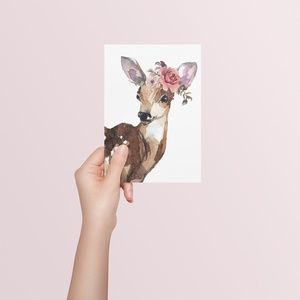 Wall Art Baby Deer Watercolor Illustration Print Poster UNFRAMED