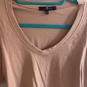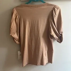 7 For All Mankind Puff Sleeve V-Neck T Shirt in Tan Size Small