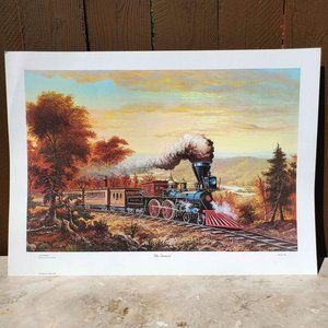 The artist, who briefly worked as a fireman on the L & N RR himself, has attempted to portray the proud beauty of the General making its way through some of the beautiful late 19th Century countryside in which it operated. This was a period in American history when there was more of a balance between nature and technology. As the painting hints, the sun was soon to set on that era.