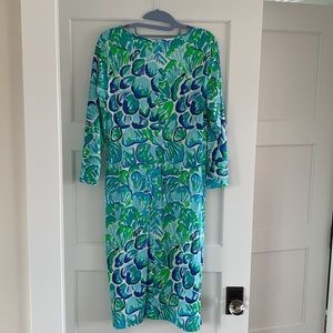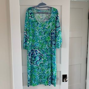 Size medium Lilly Pulitzer scoop neck Kenzie dress. Small slit on both sides of leg. Machine washable.
