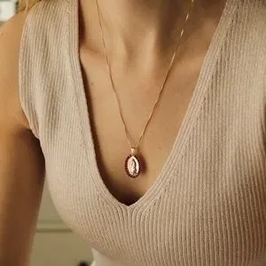 Virgin Mary Garnet Necklace | 18k Gold Filled