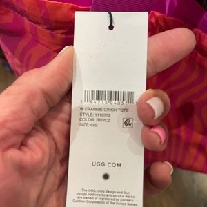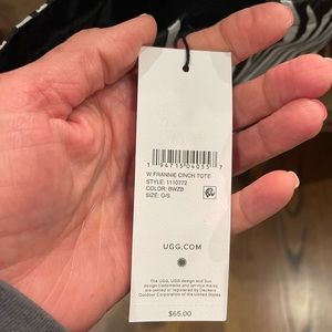 Pockets: exterior front pocket with plastic zip and UGG pull