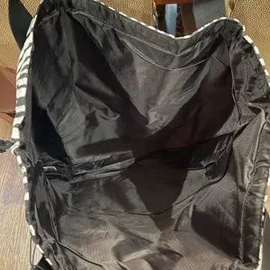 Purchased these two beauties and have not used them. Easy breezy summer bags that are light on the shoulder and will hold a ton!!!