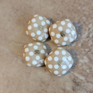 [SOLD] CHANEL Set of 4 Tan & White Polkadot Square 'CC' Shank Buttons