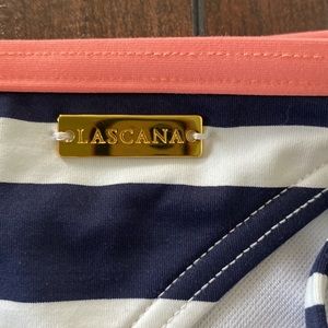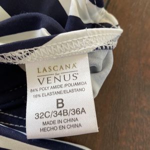Venus Underwire a halter bikini top with string bottoms - Blue/White /Coral Sz 2 bottom, sz B top