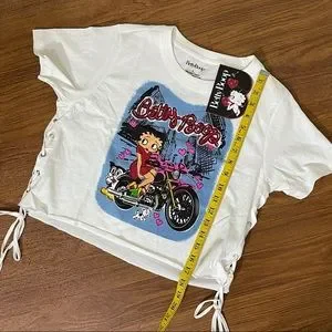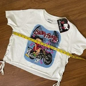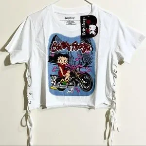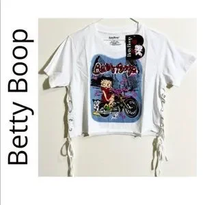 💥SOLD in store💥 Betty Boop Biker Babe Lace-Up Crop Top Size Large