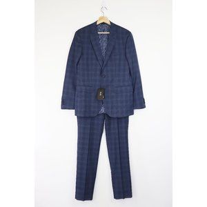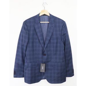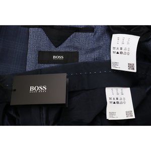 NWT Hugo Boss Jewels Linus Trim Fit Windowpane Wool Suit Set Two Button Navy 36