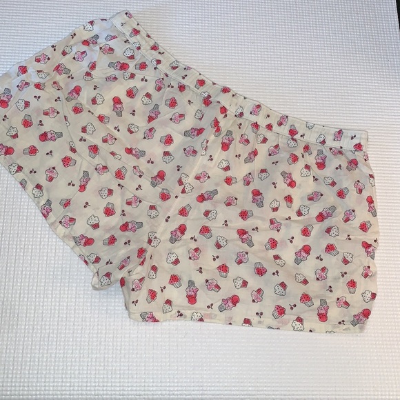 โผ๏ธ ADDITIONAL DETAILS: Super cute dessert themed sleep short. Elastic wait, white / off-white with pink cupcakes and ice cream cones all over, so sweet