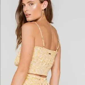 Billabong Straight Seas Floral Print Crop Top Yellow Size Large NWT