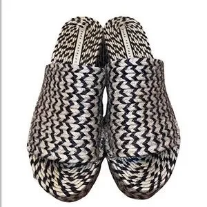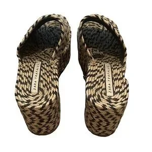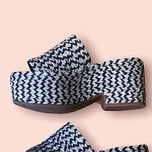 Zara stripes hemp woven boho black and creamy beige chunky platforms.