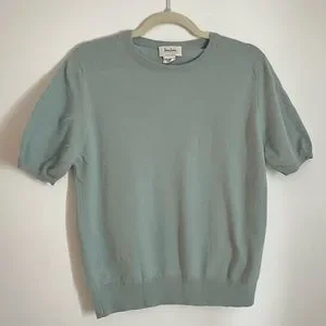 NEIMAN MARCUS Cashmere Collection Balloon Short Sleeve Top — Size XL, Light Blue
