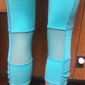 Alo Yoga Cropped Workout Leggings- Aqua Teal -Size None measurements In the Photos Good Condition