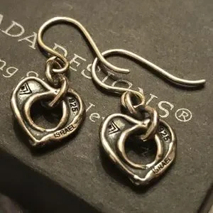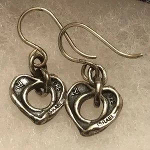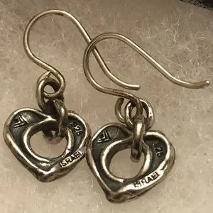 Vintage Silpada Artisan Oxidized Sterling Silver Cutout Heart Dangle Earrings W1912. Made in Israel.