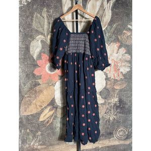 New Free People Dahlia Embroidered Maxi Dress Floral Puff Sleeves $168 sz Medium