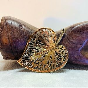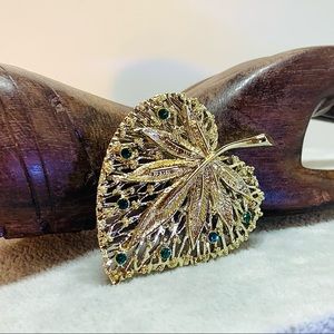 Vintage Leaf Rhinestone Brooch