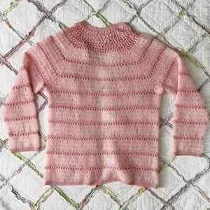 60s Baby Pink Long Sleeve Crochet Cardigan Sweater