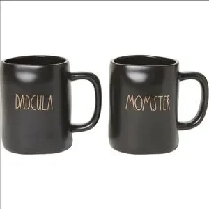 Add a pop of playfulness to your morning coffee with Rae Dunn's Dadcula and Momster mug set.