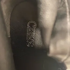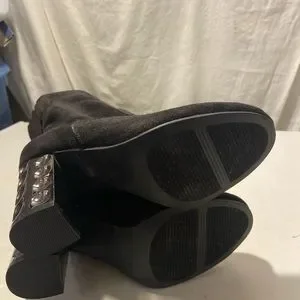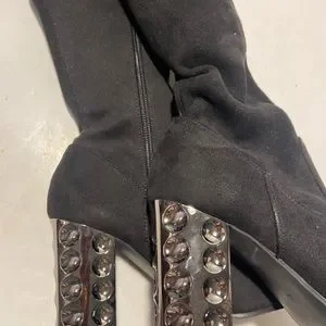 Carlos black over the knee boots zip up sides 3” metallic block heels size 6.5