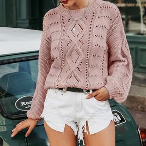 Boho Pink Knit Sweater Bishop Sleeve