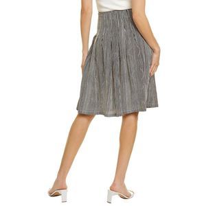 About the brand: Bold prints and unique silhouettes for the modern woman. Zelda Skirt in rembo stripe burgundy with pleated design and side slip pockets Approximately 29in from waist to hem Model is 5'11 and is wearing a size 4. Measurements may vary slightly by size. Left side seam zipper with hook-and-eye closure 100% cotton Machine Wash Imported